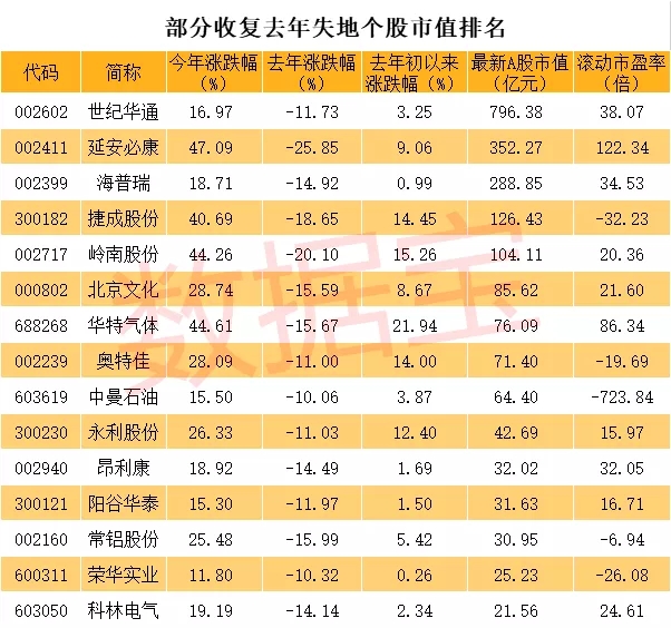 证券时报·数据宝统计显示,去年逆市下跌超10%的个股中,有15只股票今年涨幅已经抹去去年跌幅。其中延安必康和岭南股份两只股票去年跌幅均超过20%,今年涨幅均超过40%,是反转最厉害的两只股票。