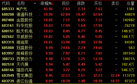 汽车股今日盘中再度活跃,截至收盘,道通科技、金固股份、科华控股、航天机电、京威股份、西菱动力、天汽模、福田汽车等涨停。