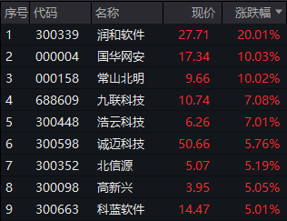 华为鸿蒙概念股中,润和软件20CM涨停,国华网安、常山北明涨停。