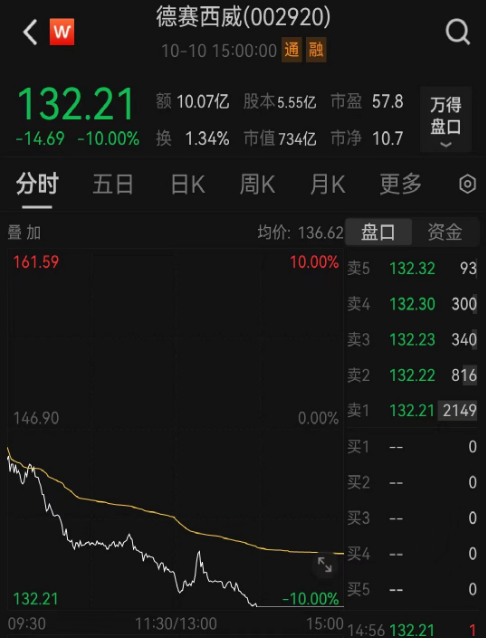 市值原本超过800亿元的德赛西威午后跌停。