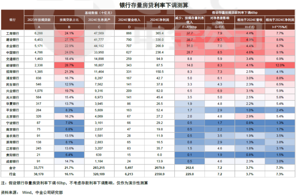 假设存量按揭利率下调,虽然短期内抑制银行股价表现,但也意味着中期风险的提前缓释。