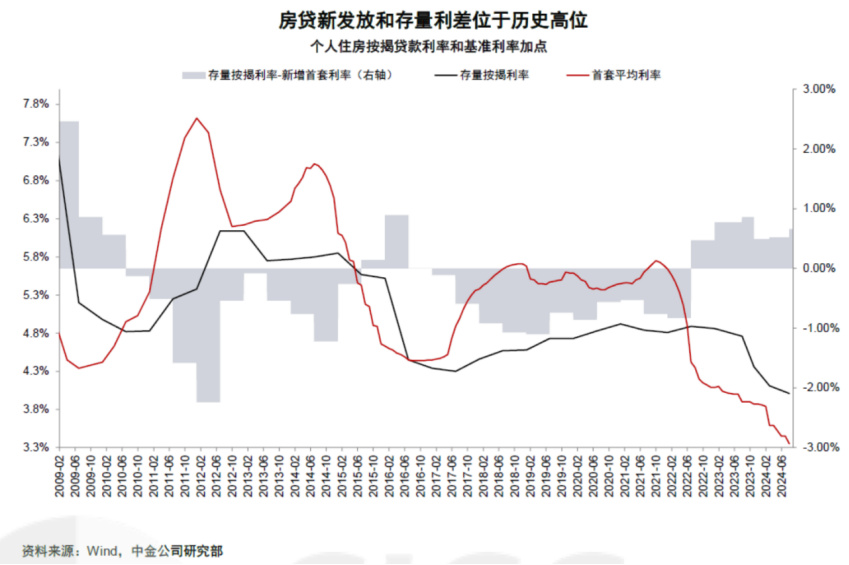 随着新发放房贷利率的持续下行,当前新增房贷利率与此前存量房贷利率之差逐渐拉大,未来可能跟进降低存量房贷利率。