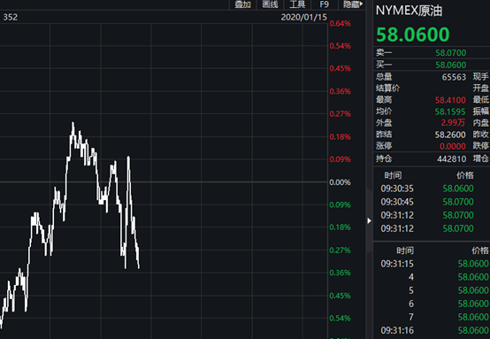 国际原油价格则保持相对稳定,NYMEX原油主力期货合约价格围绕58美元波动。