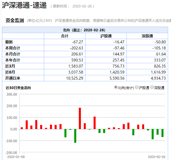 当然,整体而言,2月26日的大盘处于弱势状态。指数全线杀跌,仅有基建等几个传统板块维持大市。而且从资金走向来看,北上资金全天净流出67亿,连续四天净流出约214亿。