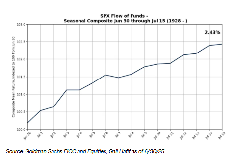 “从历史规律看,我们正步入标普500指数表现最强劲的月份——回溯至1928年,该指数7月平均回报率达1.67%,”高盛分析师特别指出,7月的头两周历来是全年股市表现最佳的时段。