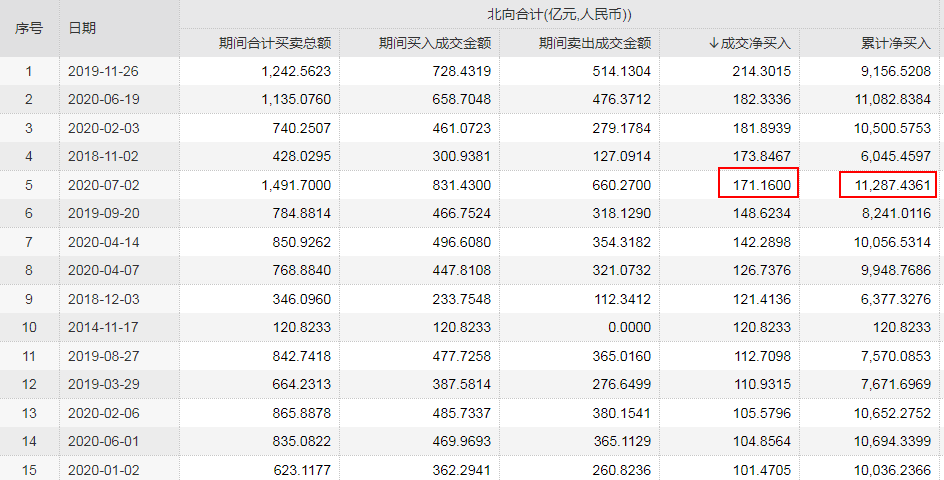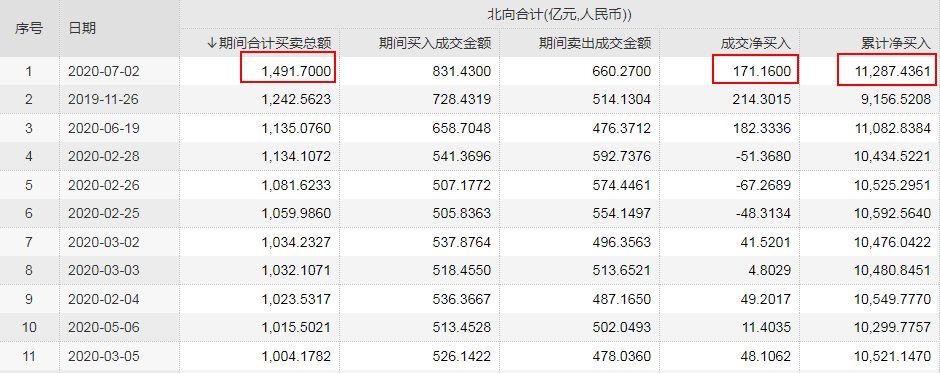 截至目前,北向资金合计净流入金额达11287.44亿元,为陆股通开通以来最高纪录。