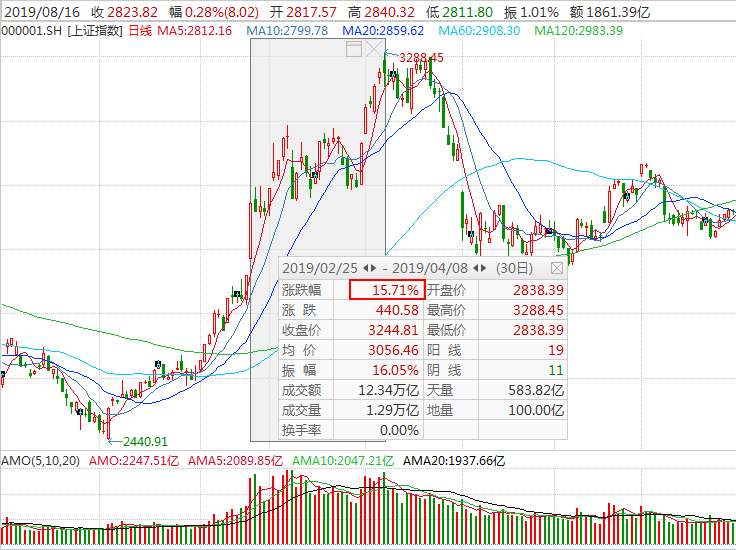 2019年初,上证指数在创下阶段性低点2440点后,开始逐渐增量反弹,直到2019年2月25日,两市成交总额突破万亿,直到2019年4中旬,成交额再次跌破万亿。