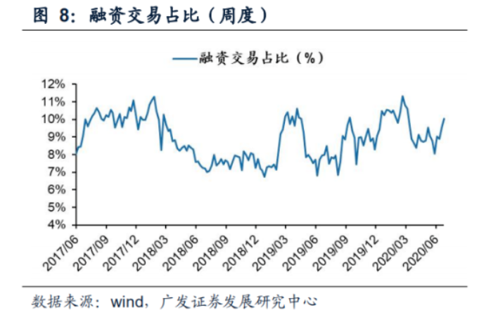 与北向资金相比,融资交易占A股成交总额比例要小于北向资金,但近期提升幅度也比较明显。