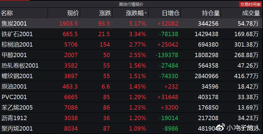 在股票现货市场上,与黑色系商品相对应的周期股股价也在11月25日扬眉吐气了一把。行业排名表中,钢铁、煤炭零头,紧接着是建材、建筑,再往下工程机械、房地产,清一色的传统周期股。