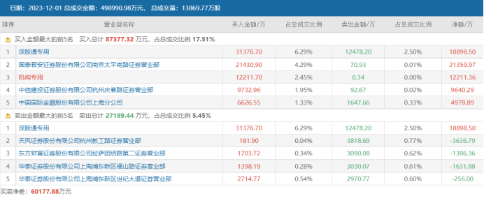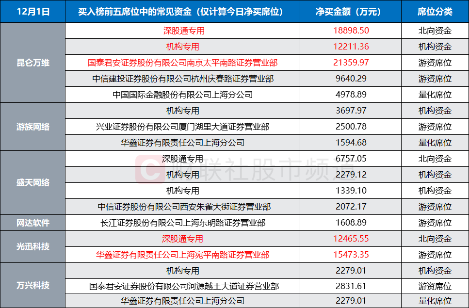 注:昆仑万维12月1日龙虎榜