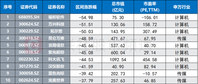 注:6月21日至11月30日跌幅居前的AI概念股