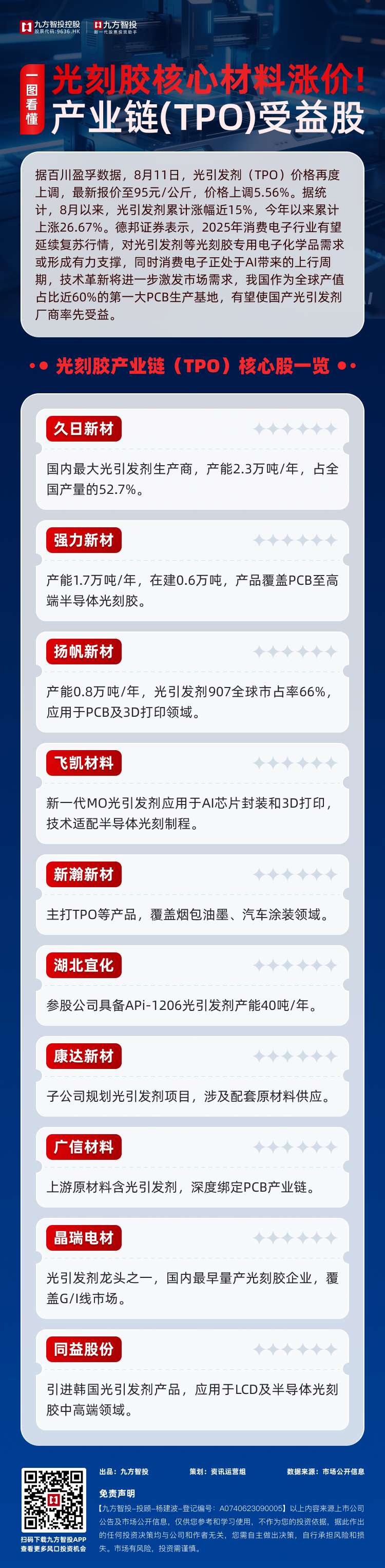 光刻胶核心材料涨价!一图看懂产业链(TPO)受益股