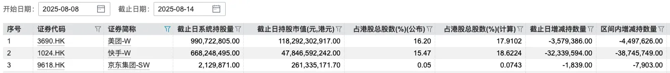 短线层面,港股通南向资金近几日也对美团、京东、快手有所减持。另据港交所数据显示,截至8月14日,腾讯卖空股数飙升至527.33万股,短短数日便激增近3倍。网易、京东卖空股数也在业绩披露前后有所抬头。