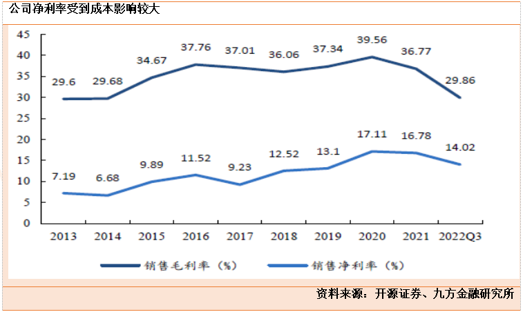 2022Q4以来,钨粉价格逐渐回落,2022年11月25日全国钨粉均价为249元/公斤,为2021年7月以来的低点。材料端成本对公司业绩影响存在滞后性,公司毛利率、净利率水平有望回升。