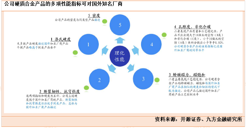 公司生产的硬质合金产品包括矿用工具合金、耐磨工具合金、切削工具合金。公司生产的硬质合金定位中高端,产能国内前十,在多个下游行业国内头部客户的采购份额中位列第一,是国产替代的主力军之一。