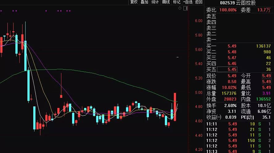云图控股旗下牛牛寨北矿区磷矿储量大,目前黄磷产能6万吨/年。在昨日涨停的背景下,今日开盘也一字涨停。