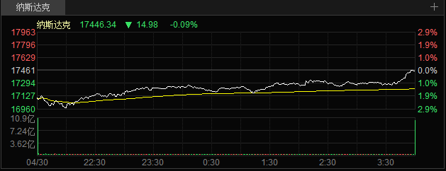 大型科技股大多下跌,特斯拉跌3.38%,亚马逊跌1.58%,Meta跌0.98%,谷歌A跌0.85%,英伟达跌0.09%,微软则收涨0.31%,苹果涨0.61%。