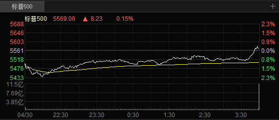 标普500指数11个板块中,金融板块涨0.21%,医疗保健板块涨0.89%,房地产板块涨0.57%,工业板块涨0.8%,能源板块大跌2.6%。
