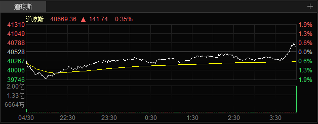 美东时间周三,美股三大指数低开高走,道指和标普指数最终收涨。