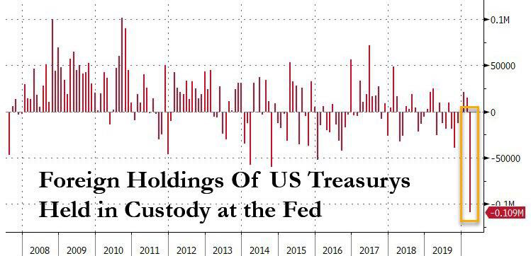 3月外资抛售美国国债逾千亿美元。美联储最新数据显示,在截至3月25日的一周中,美联储代理外国账户持有的美国国债减少573亿美元,外国账户美债周平均持有量下跌至2.891万亿美元,为2017年4月以来最低。在截至3月25日的4周内,外国投资者在美联储账户中托管的美国国债减少了1090亿美元,创历史最大单月下降规模。