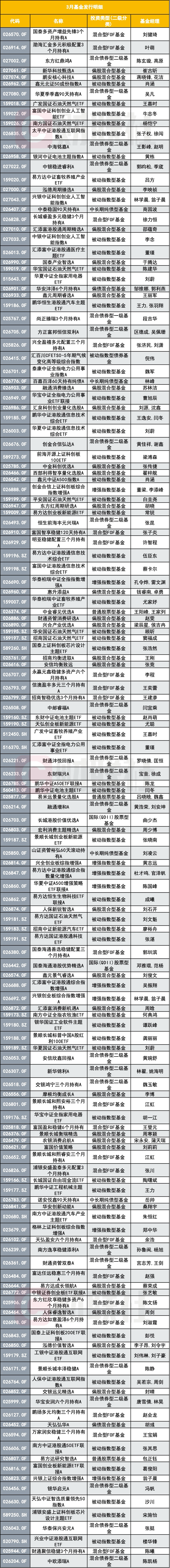 有公募市场人士表示,当前新发市场一方面还在延续指数化扩容趋势,ETF、联接基金和指数增强仍是最容易形成批量供给的方向;另一方面,主动权益产品也需要维持存在感,尤其是当市场风格轮动较快时,基金公司往往会同步推出成长、消费、科技、港股等不同主题或风格的产品,以保持产品线完整度。3月这批新发基金,正体现出这种“数量以指数为主、布局上多线推进”的特征。