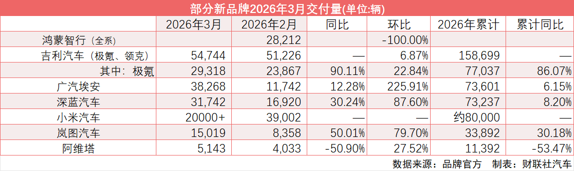 由传统车企孵化而生的造车“新品牌”,在开年阶段持续承压后,交出了2026年第一季度收官月成绩单。