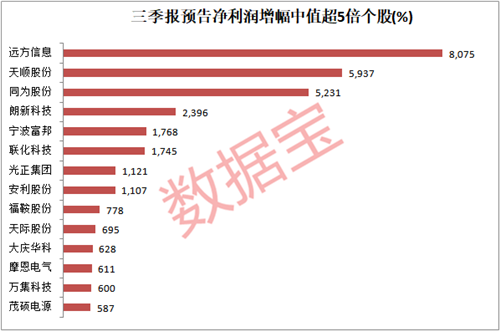 从三季报业绩来看,除思源电气、浩物股份及富祥股份外,其余7股净利润均有望翻倍增长。(数据宝 张娟娟)