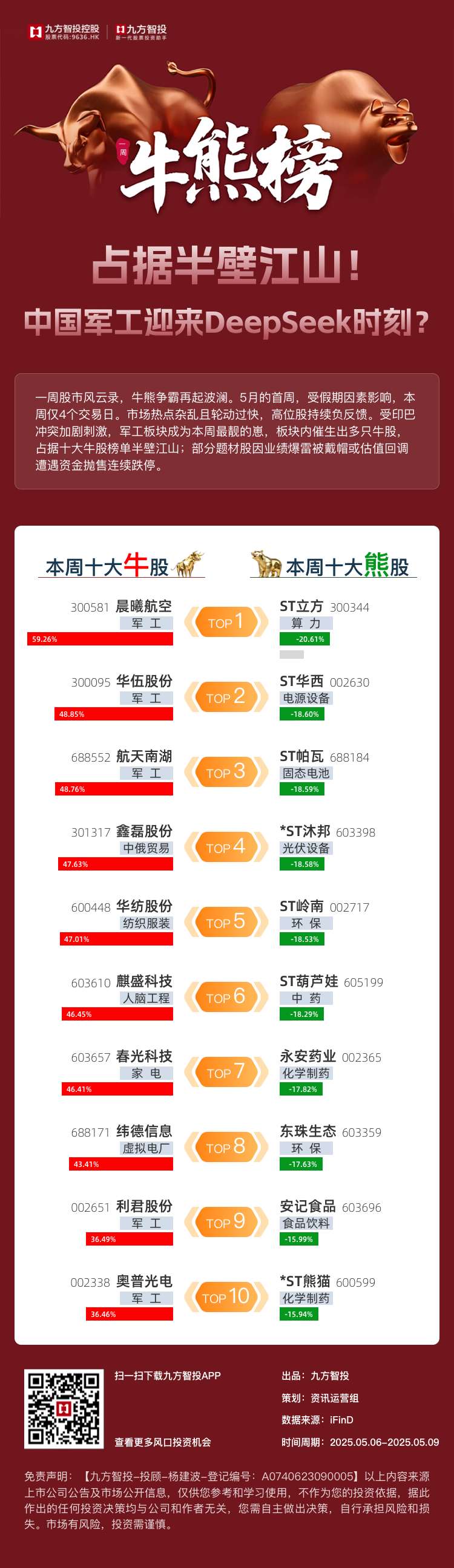 一周牛熊榜:中国军工迎来DeepSeek时刻?