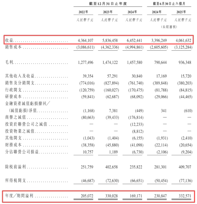 2022年、2023年、2024年和2025年前6个月,潮宏基的营业收入分别约为43.64亿元、58.36亿元、64.52亿元和40.62亿元,净利润分别约为2.05亿元、3.3亿元、1.69亿元和3.33亿元。