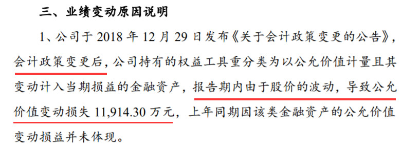 比如,赣锋锂业上半年实现归母净利润2.96亿元,同比下降59.23%%,扣非净利润为3.80亿元,同比下降45.22%。公司表示,会计政策变更后,公司持有的权益工具重分类为以公允价值计量且其变动计入当期损益的金融资产。报告期内由于股价波动,导致公允价值变动损失11914.30万元,上年同期因该类金融资产的公允价值变动损益并未体现。