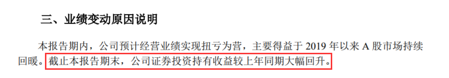 又如御银股份:公司预计上半年实现归母净利润5000万元-6000万元,同比增长1019.42%-1243.30%。公司表示,报告期内公司经营状况正常,财务状况良好,业绩变动的主要原因是公司获得证券投资收益所致。