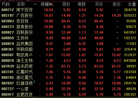 免税概念15日盘中再度活跃,截至发稿,南宁百货、广百股份、老百姓、首商股份、百联股份、王府井、益民集团等涨停,华联综超涨逾8%。值得注意的是,王府井已连续五日涨停。