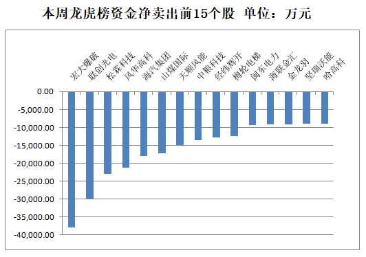个股龙虎榜净卖出金额居前的15只个股分别为: