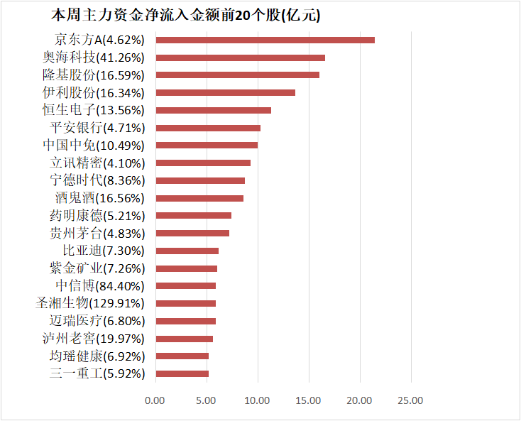 (注:此表为主力资金净流入统计,与上一表格及下一表格中统计口径均不同)
