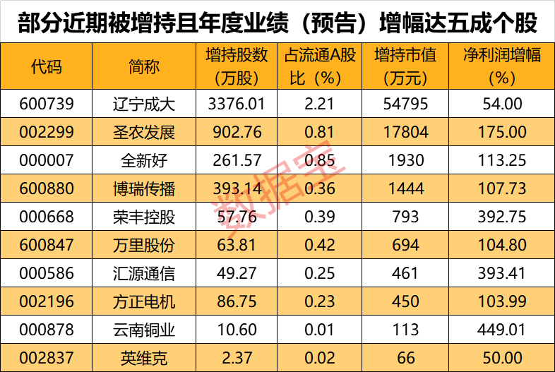 结合年度业绩(业绩预告)来看,云南铜业、汇源通信、荣丰控股等公司净利润同比大幅增长,增幅分别高达449.01%、393.41%、392.75%。这些绩优且被增持的个股,或是股价已经被低估,或是未来潜力较大,值得关注。