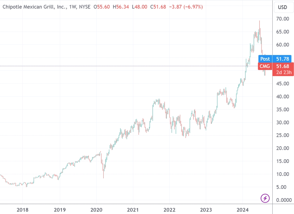 失去尼科尔的奇波雷墨西哥烧烤,则在周二收盘跳水7.5%。