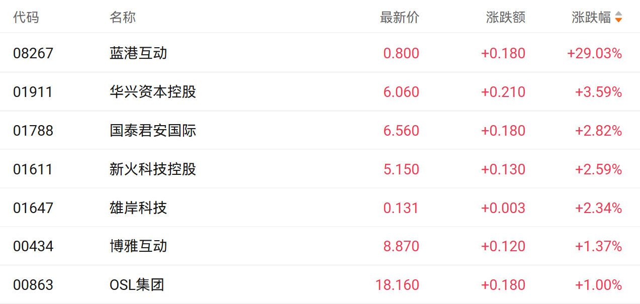 今日港股加密货币概念股再度走强。截至发稿,蓝港互动(08267.HK)涨29.03%、华兴资本控股(01911.HK)涨3.59%、新火科技控股(01611.HK)涨2.59%、雄岸科技(01647.HK)涨2.34%。