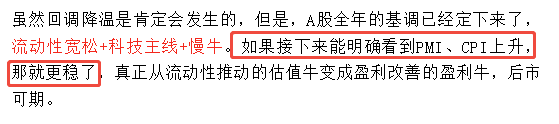 原因还是我周三说过的,大A这轮牛市,很多人担心它是一个流动性驱动的估值牛,而只有PMI、CPI、PPI数据回暖,才能证明企业盈利改善,实体经济确实在复苏。