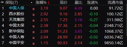 保险板块也全线飘红,中国人保涨逾3%,中国太保、新华保险、中国人寿涨逾2%。