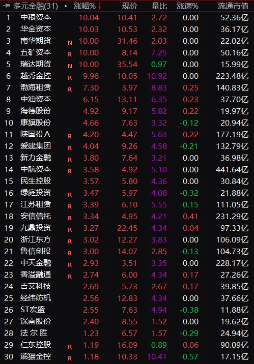 受此利好刺激,今日多只金融股强势大涨。其中,越秀金控、华金资本、贤丰控股、恒基达鑫开盘涨停。期货方面,瑞达期货和南华期货相继涨停。