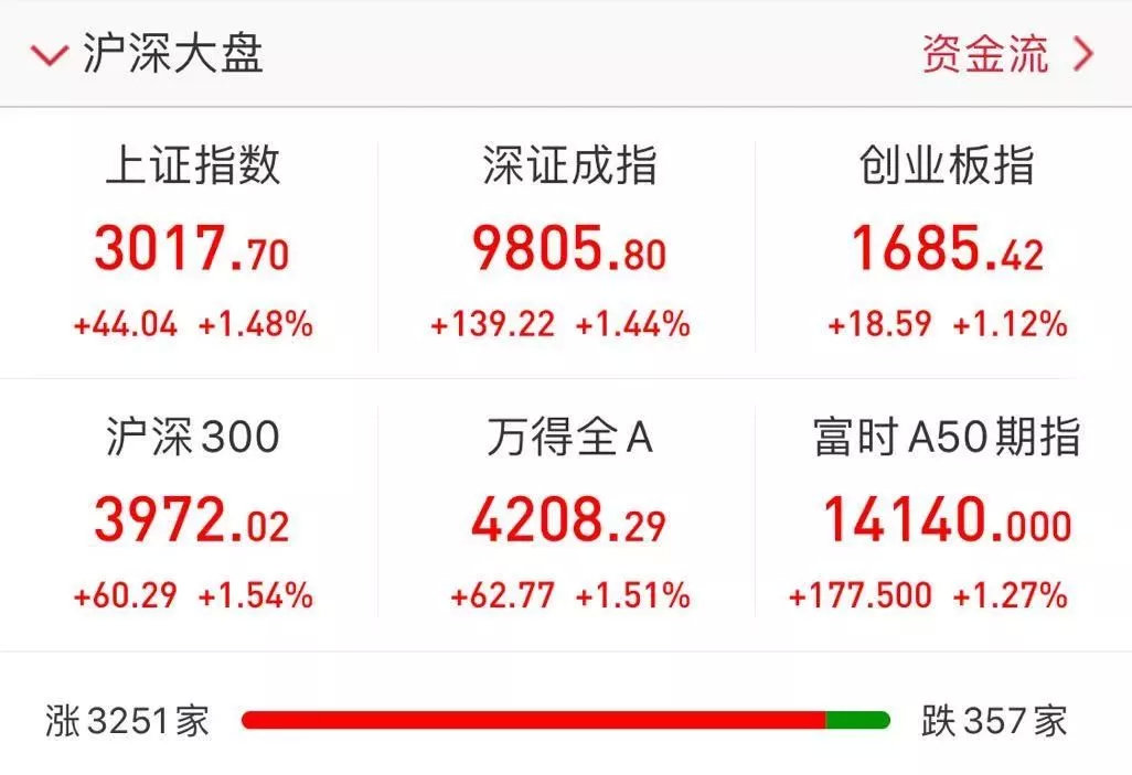 在上述多重利好助推下,上证指数高开高走,时隔一个月,重返3000点上方,市场情绪明显回暖。截至记者发稿时,上证指数上涨近1.5%。