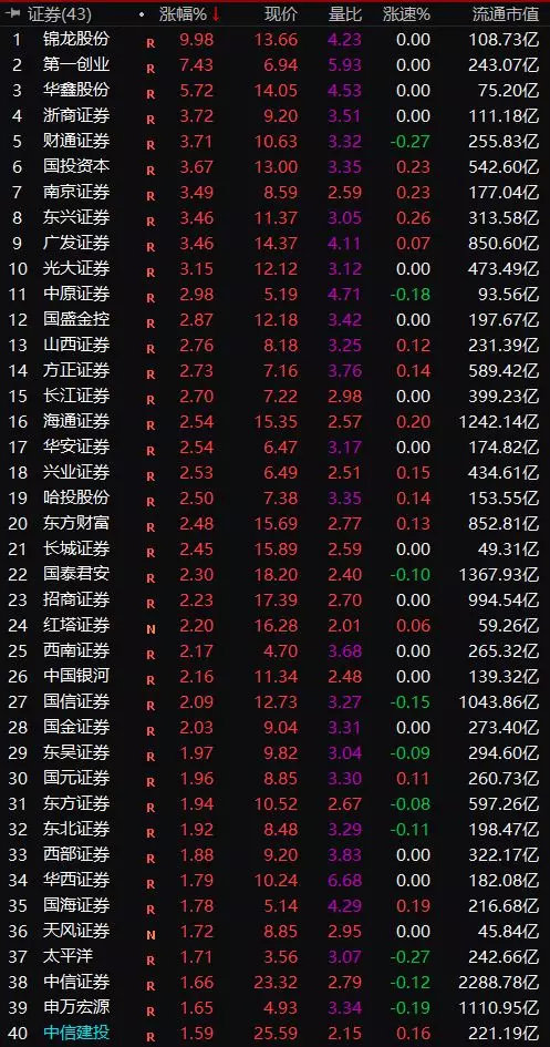券商概念股板块也出现快速拉升,锦龙股份涨停,第一创业大涨超过7%。