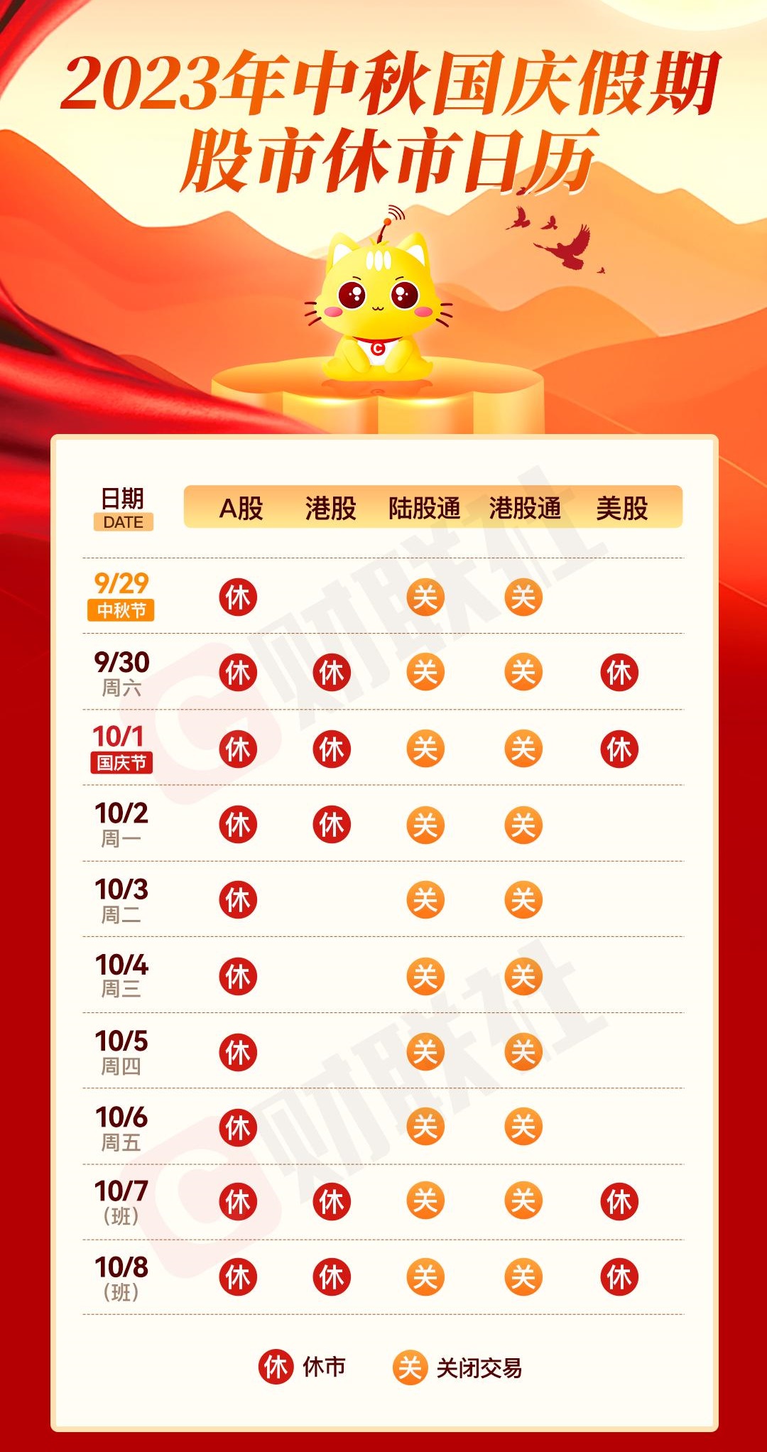A股连休10天,港股9月29日正常交易,10月2日休市1天后,10月3日起恢复交易,美股交易安排不变。