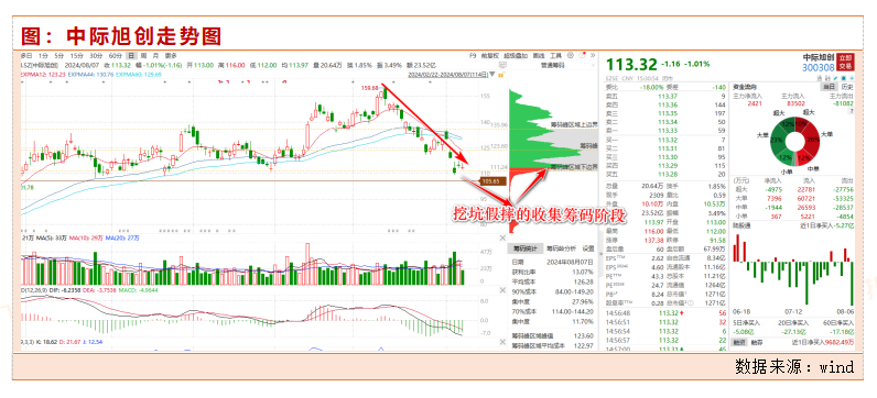 从上述行业需求、公司业绩等方面展望,光模块没有预期中悲观。同时我们从资金角度来看,当下的性价比也逐渐凸显。从近期公募基金公布基金持仓变动来看,持仓增加TOP5的行业分别为电子(+3.8%)、通信(+1.1%)、国防军工(+0.6%)、家用电器(+0.6%)和公用事业(+0.6%);具体到个股的加仓前三,分别为立讯精密、中际旭创和比亚迪,而从中际旭创的走势和筹码结果来看,基本没有赚钱,那么在后市估值回升的阶段,还是有修复的弹性。