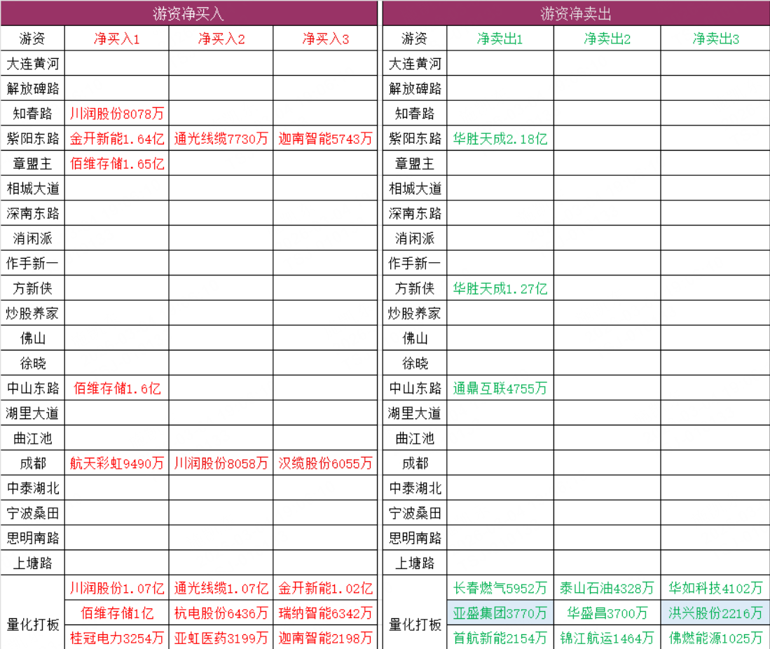 游资动向: