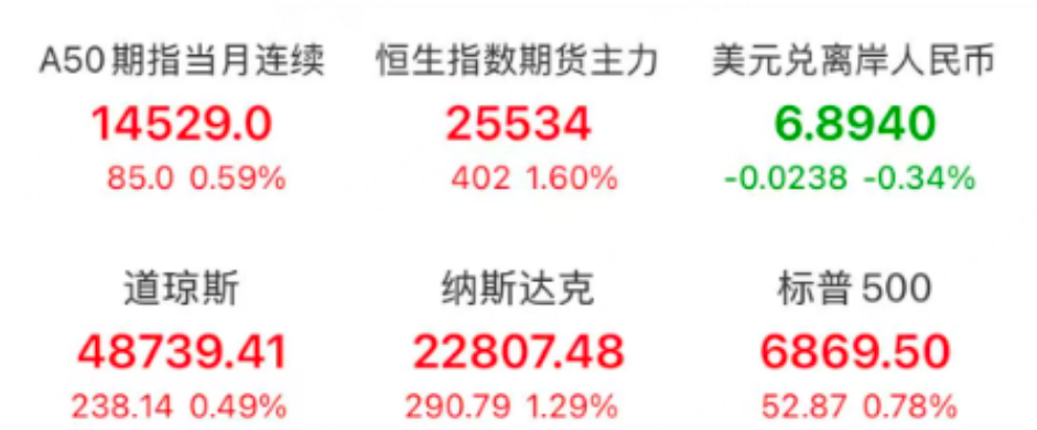 A50指数上涨0.59%。
