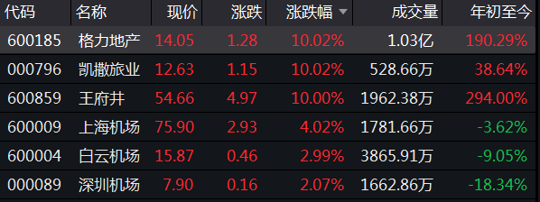 延续强势,免税概念今日盘中再度活跃,截至收盘,格力地产、凯撒旅游、王府井等涨停,上海机场涨逾4%。值得注意的是,今年以来,王府井累积涨幅已接近300%,格力地产累积涨近200%,中国中免累积涨约90%。