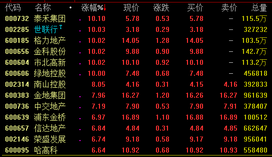 地产板块今日盘中再度发力拉升,截至收盘,泰和集团、世联行、格力地产、金科股份、市北高新、绿地控股等涨停,南山控股涨逾8%。