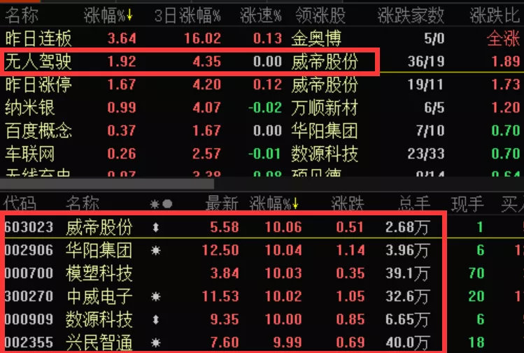 资金面上,北上资金经过上周五巨量买入后,今日小幅净流出逾18亿元。盘面上,大部分行业板块下跌,但自动驾驶概念表现十分活跃,威帝股份、华阳集团、数源科技、兴民智通等6股涨停,双林股份、东风科技、中威电子等涨幅居前。板块市值增加近200亿元。