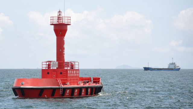 采用北斗航标遥测遥控装置的一艘大型灯船投放在珠江口担杆水道(2019年6月20日摄)新华社图